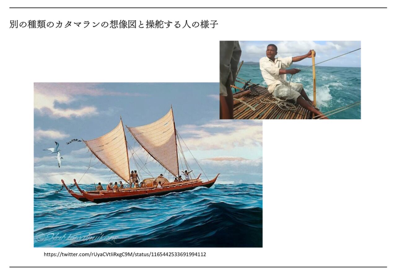 ……… 著者の安達さんは、様々な資料から、この物語の双胴舟の積載量についても考察してます。